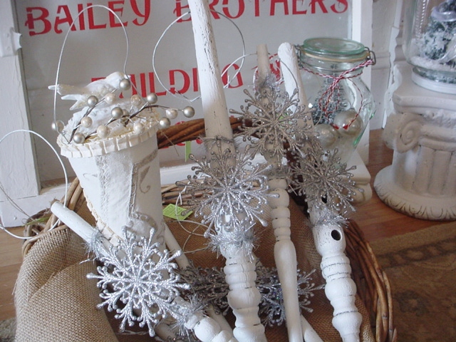 On the way home with it~~schemed my plans to use a big old galvanized bucket with a "recycled Christmas Tree" from the Restore (2.00); leftover garlands, tuck in some white burlap at the base of tree and new red bows. Add lights~~